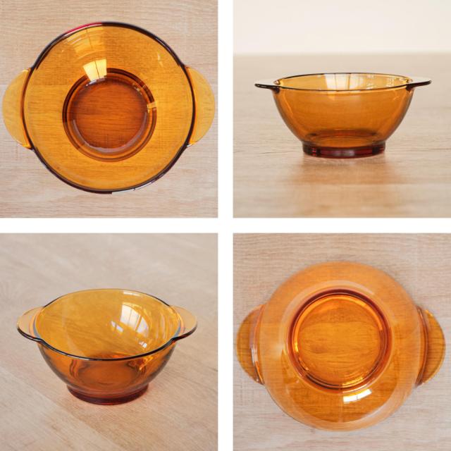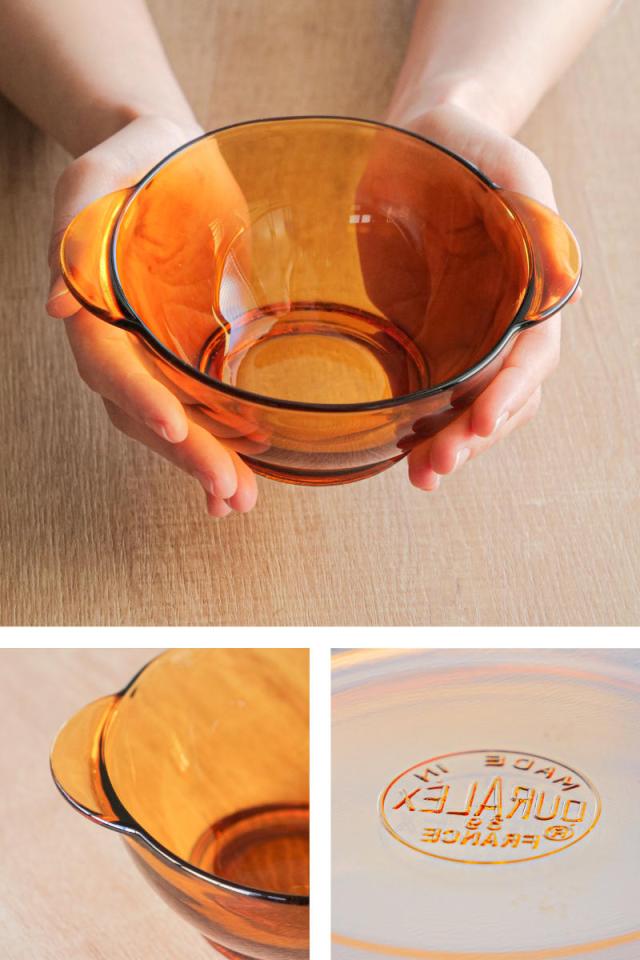 DURALEX デュラレックス ニセンボウル 13.5cm 持ち手付き 同色6個セット ( AMBER 食洗機対応 電子レンジ対応 強化ガラス 取っ手付き ガラス食器 サラダボウル フルーツ レトロ 耐熱性 丈夫 割れにくい おしゃれ )