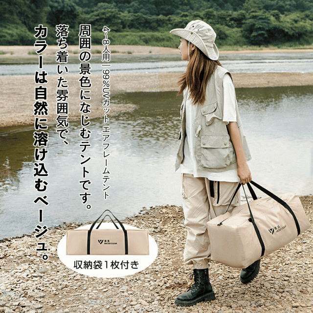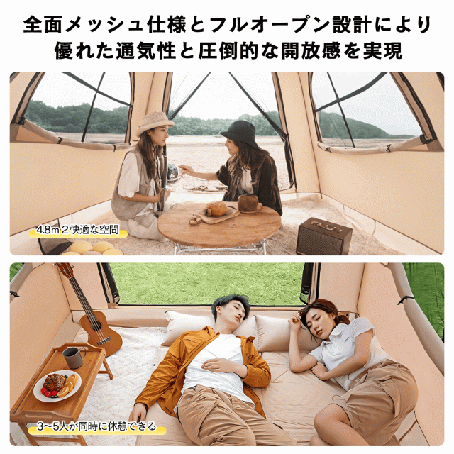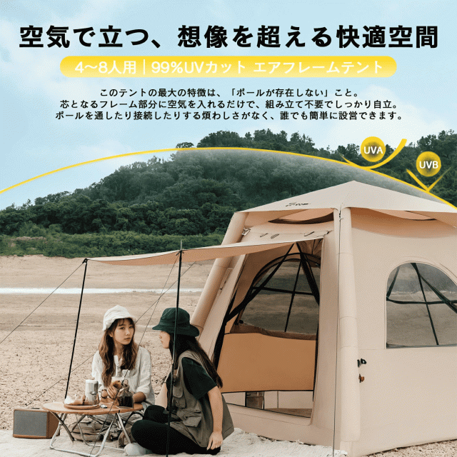 テント 3〜4人用 キャンプ アウトドア ワンタッチ キャンプ用品 自動 自立式 簡単 ポール一切不要&自動設営 グランピング 大型 エアフレームテントが空気で瞬時に自立、99%UVカット 防水 強風耐性でアウトドアを快適に おしゃれ
