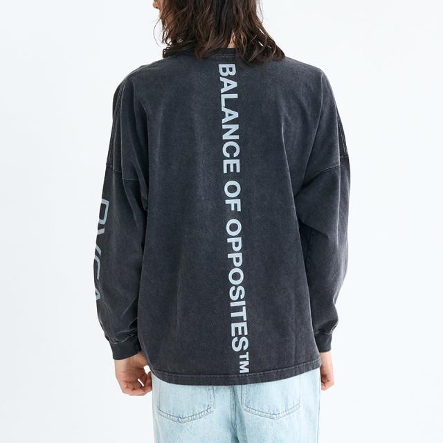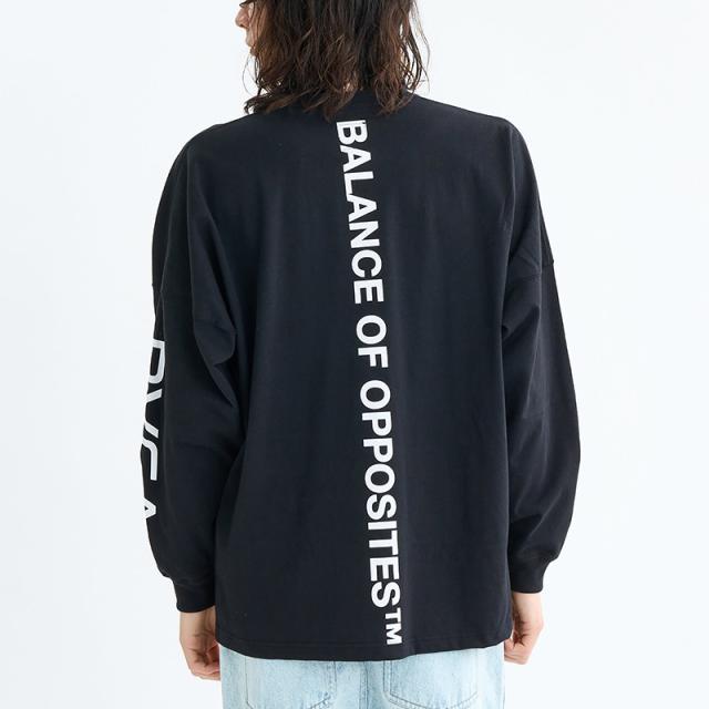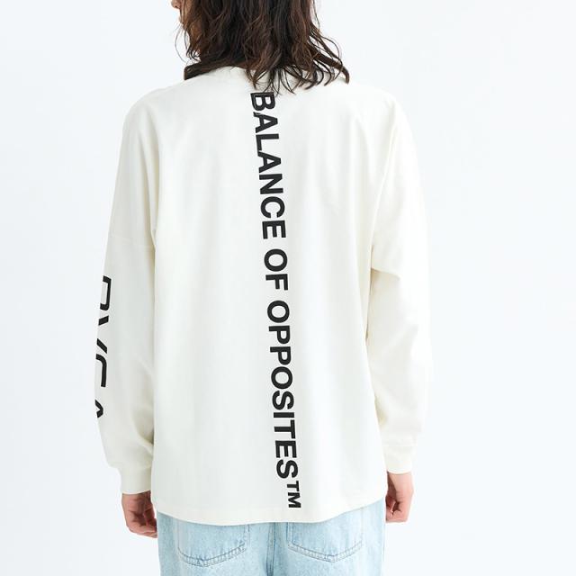 フロントとスリーブにはRVCAのロゴ、バックにはブランドのアイデンティティでもある「THE BALANCE OF OPPOSITES」のメッセージをプリント。シンプルながらも存在感のあるデザインが特徴です。
