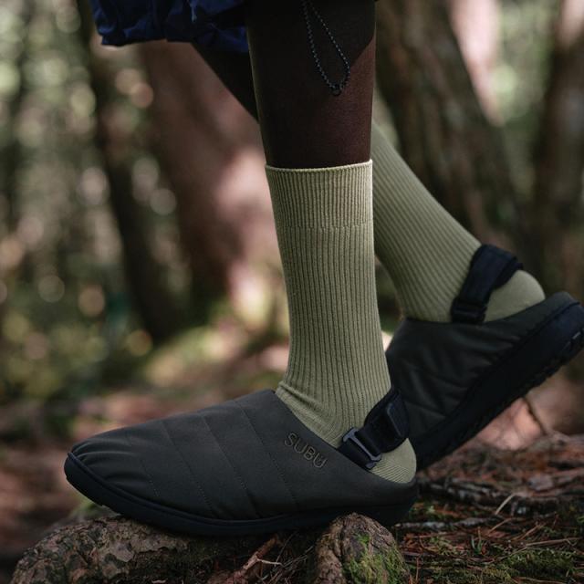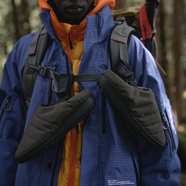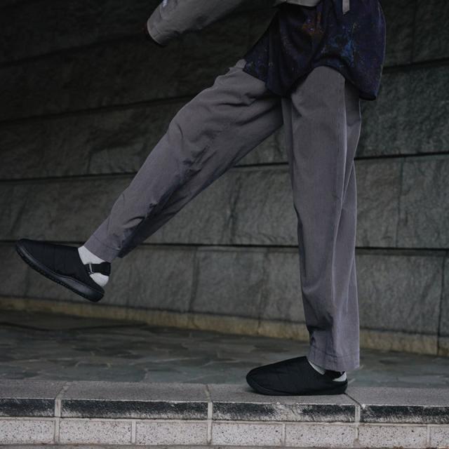 SUBUならではの心地よさは健在。内側の起毛ライニングが素足を優しく包み込み、ダウンのように暖かなアッパーが寒さをシャットアウト。