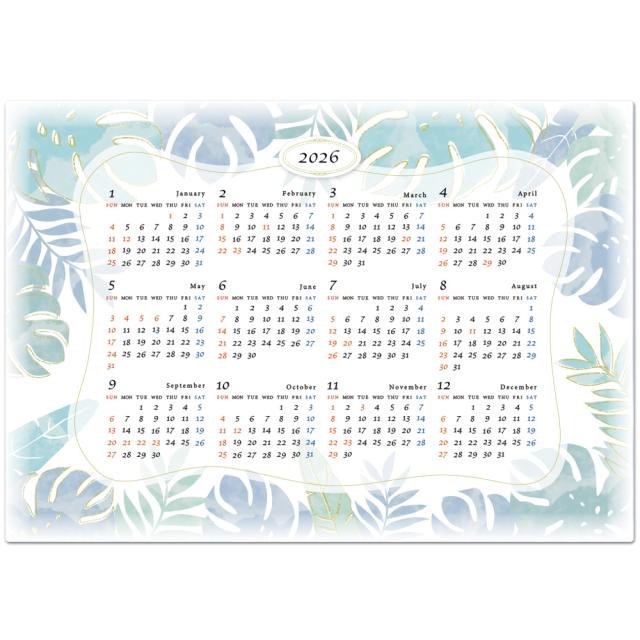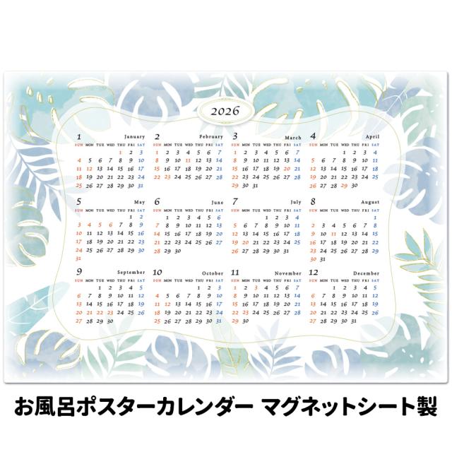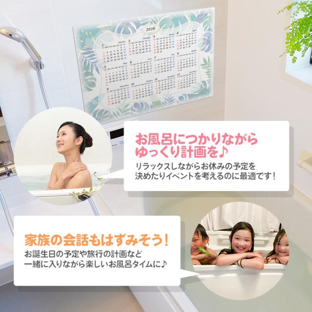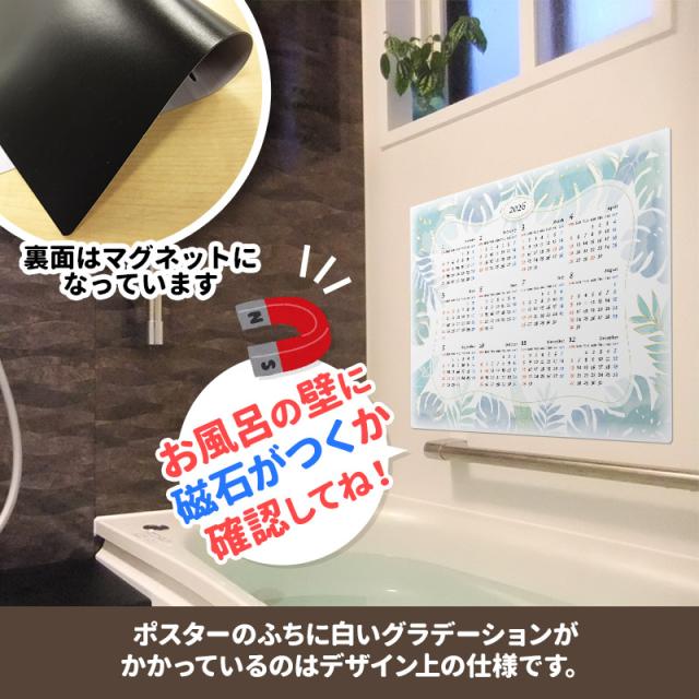 2026年お風呂ポスターカレンダー シンプル ボタニカル マグネットシート製 宅配便限定
