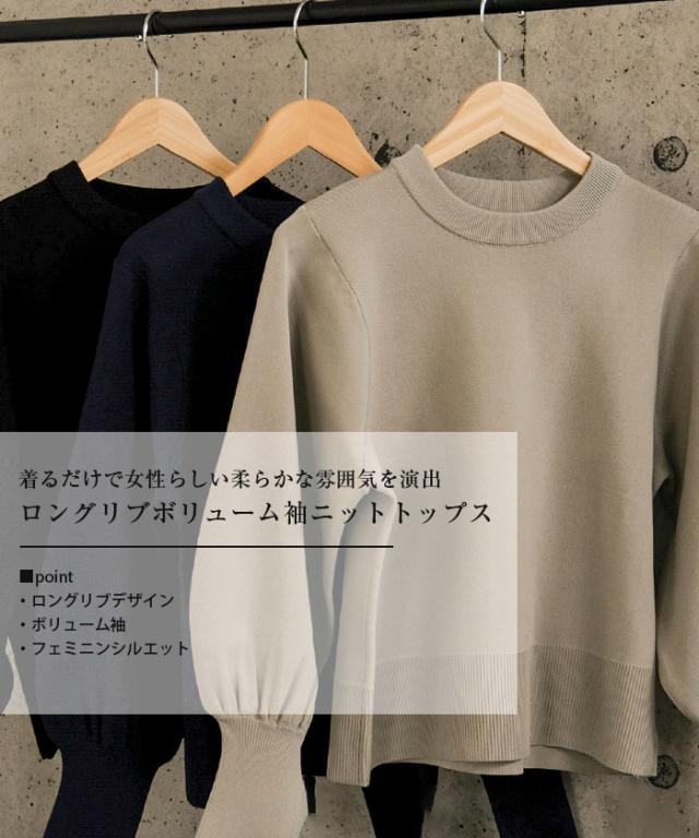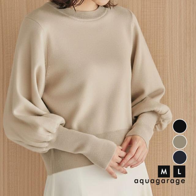 ≪ゆうメール便配送30・代引不可≫ ロングリブボリューム袖ニットトップス 春 秋 冬 M レディース アクアガレージ aquagarage