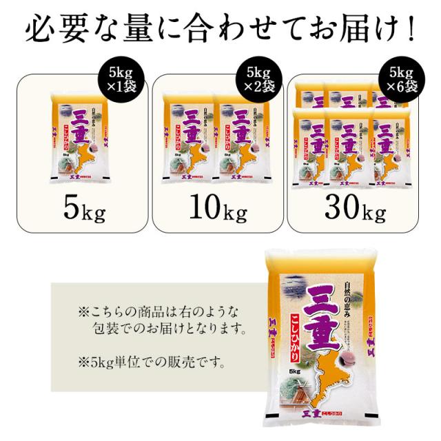 [新米 令和7年産] 三重県産 こしひかり 白米 30kg [5kg×6P]30kgまで1配送でお届け[他商品と同梱不可]【1〜2営業日以内に出荷】【送料無料】