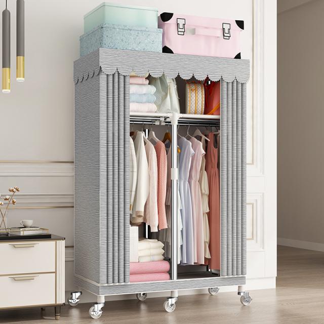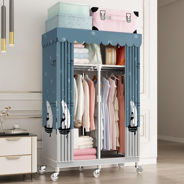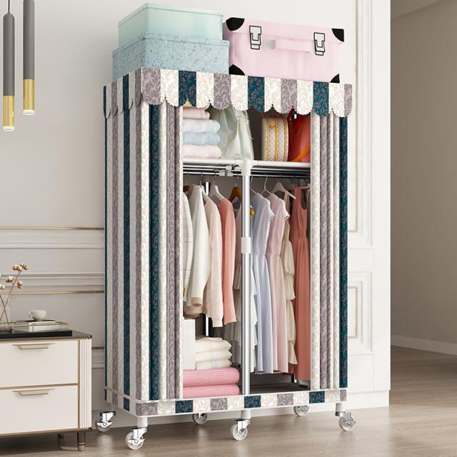 ワードローブカバー付きクローゼットハンガーラック洋服ダンスオーガナイザーワードローブ錦ポータブルキャンバスワードローブ吊り下げレール付きファ