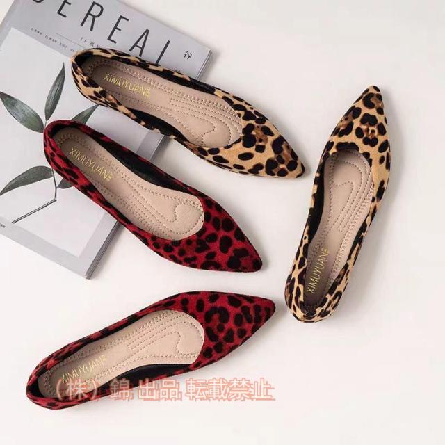 レディースぺたんこ靴大人パンプスレオパード柄ヒョウ柄甲浅履きやすい歩きやすいローヒールフラットシューズ春秋夏美脚株式会社錦スエード大きいサイズ