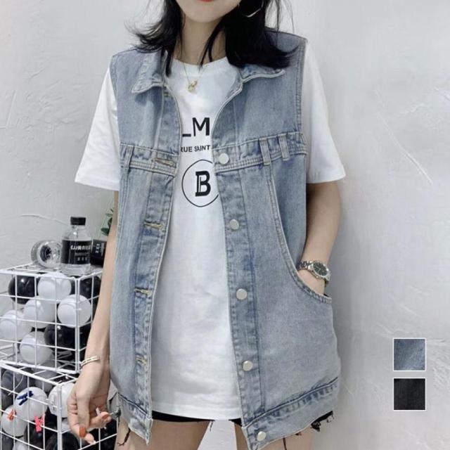 レトロ ノースリーブ デニムジャケット カジュアル ライトアウター 春夏秋冬 韓国デニムジレ10代20代30代 おしゃれ
