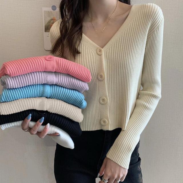 リブニットカーディガン ショート丈 秋冬【ゆうパケット可】