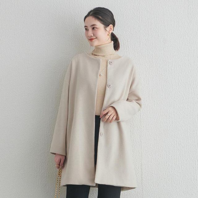 ノーカラーコート レディース 秋冬コート 50代 オフィス アウター ミドル丈 保温 防寒 着痩せ 上品 ウィンドブレーカー 暖かい ゆったり 株式会社錦 通勤