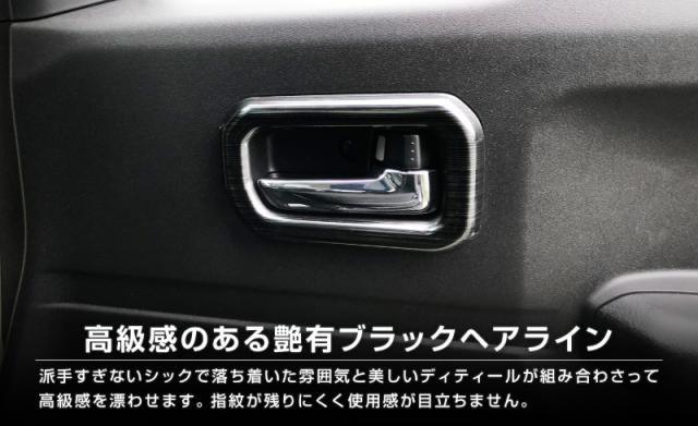 ドアハンドルカバーは少し地味になりがちな内装を引き締め、落ち着いた存在感をプラスします。