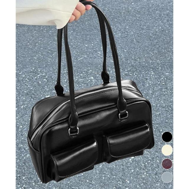ファスナー付きトートバッグ マチ広めハンドバッグ おしゃれ マルチポケット 学生カバン 韓国風通勤通学 PUレザーバッグ