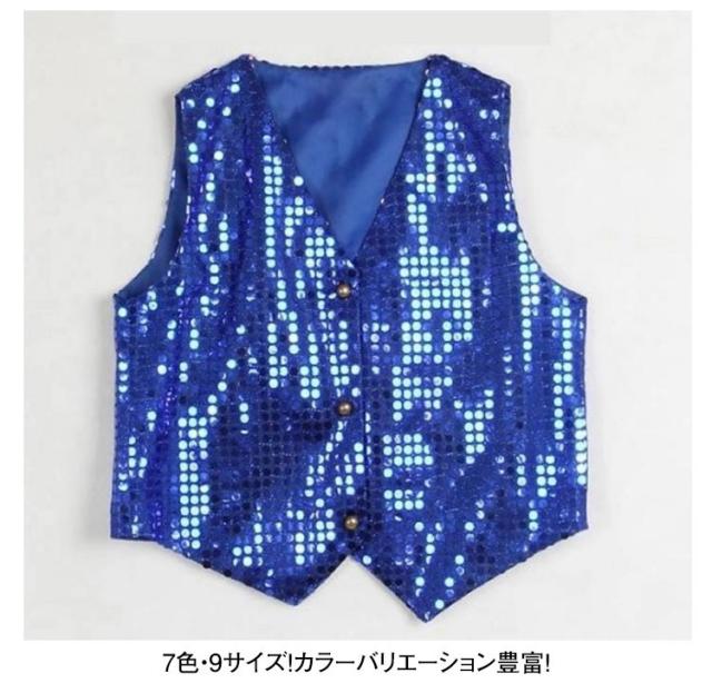 キラキラ スパンコール ヒップホップ ダンス衣装 ベスト 衣装 スパンコール ベスト スパンコール 7色・9サイズ 派手 子ども服 ダンス衣装 ステージ衣装 キッズダンス 春 子供?大人までok 秋 冬 カジュアル お洒落 ジャケット