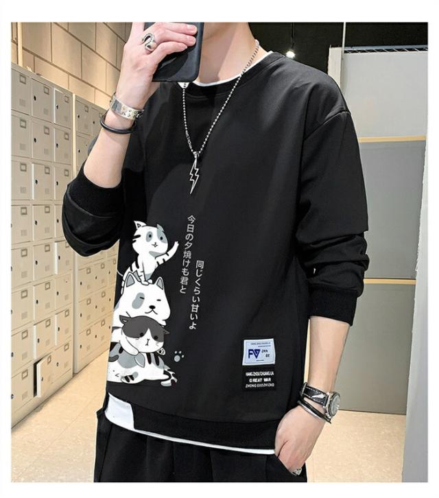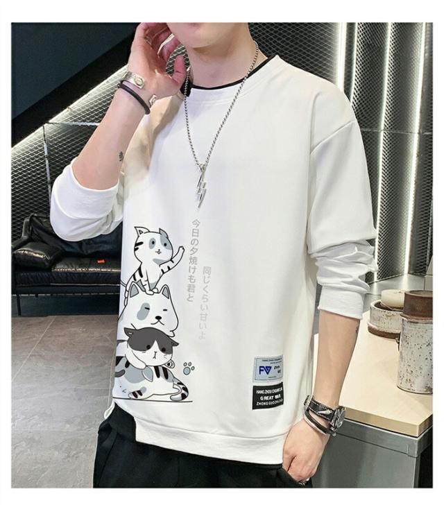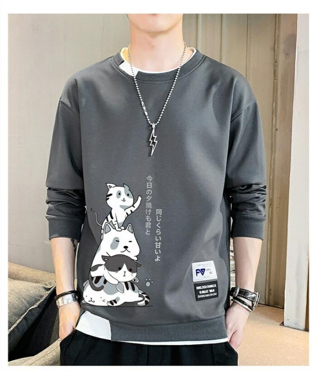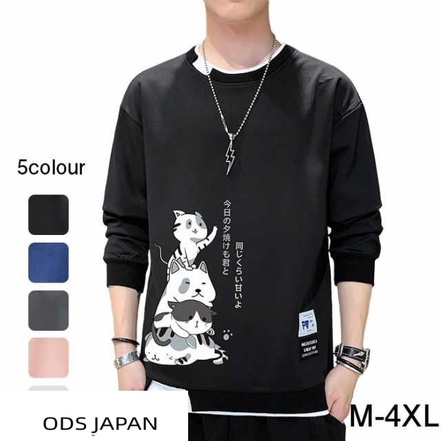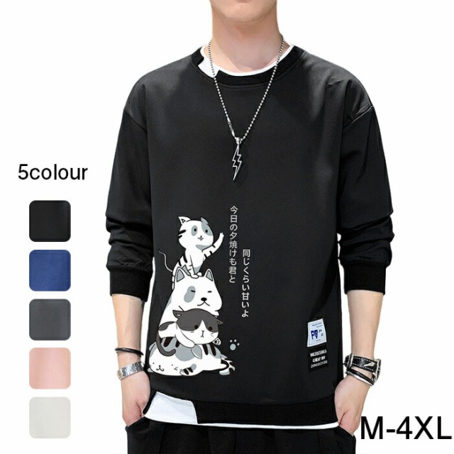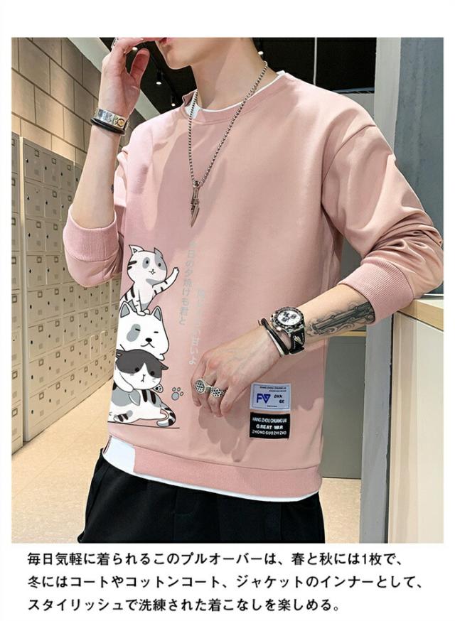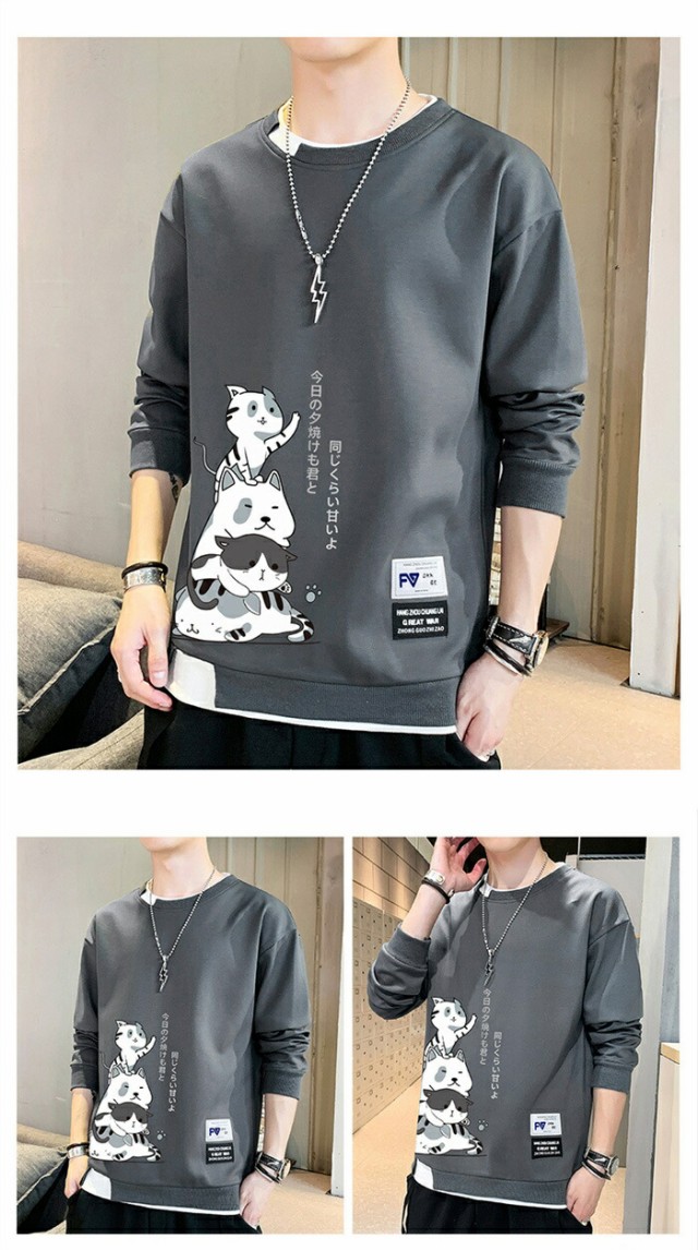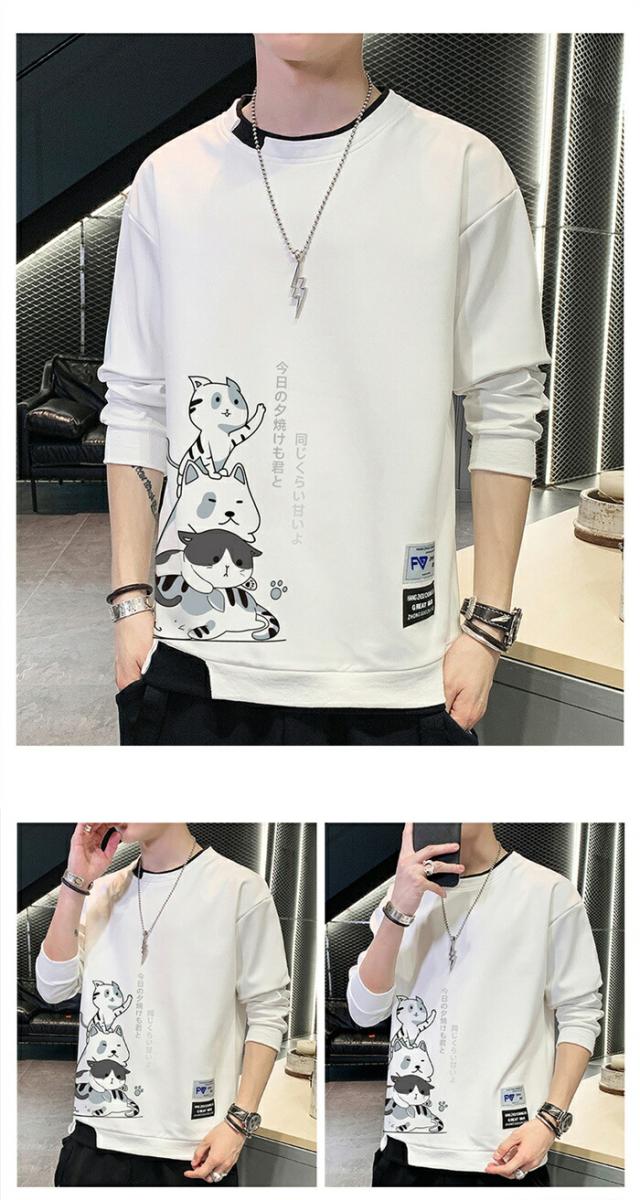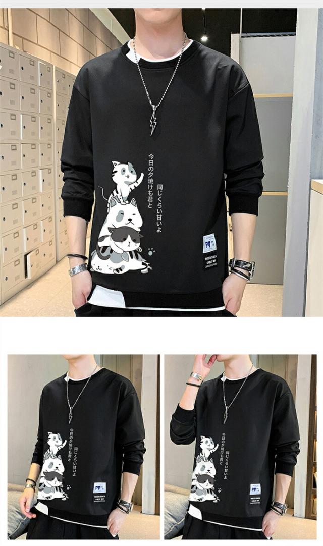 メンズ トレーナー 秋服 パーカー 長袖 tシャツ 丸首 猫 柄 プリント スウェット 大きいサイズ プルオーバー ゆったり カジュアル おしゃれ 可愛い おもしろ 無地 軽い 快適 柔らかい