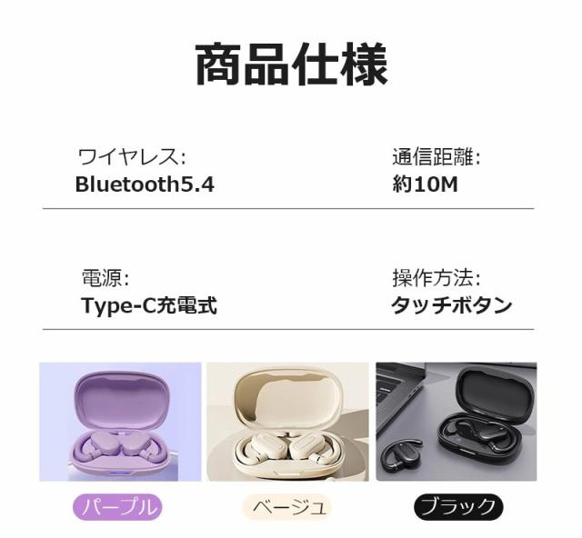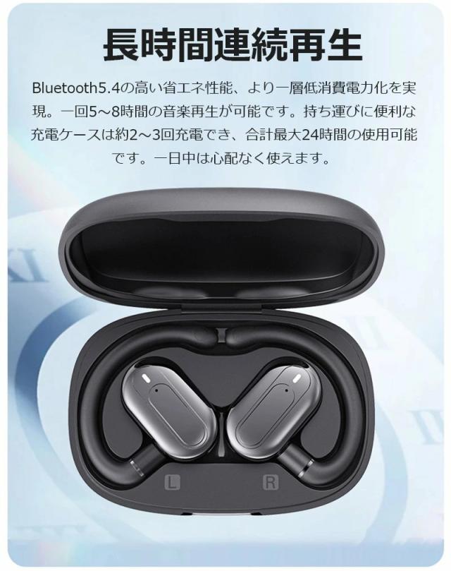 空気伝導ワイヤレスイヤホン Bluetooth5.4 OWS式 オープンイヤー ワイヤレスヘッドセット 無線 空気伝導式 耳を塞がない 周囲の音が聞こえる 耳かけ式 防水