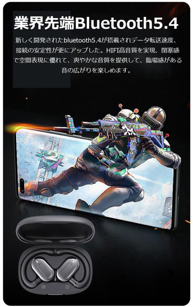 最新Bluetooth5.4チップが搭載されており、より高速な伝送速度と安定した通信が実現されました。干渉防止能力も向上させ、音楽鑑賞はもちろん、ゲームや動画もスムーズで思う存分楽しめます。