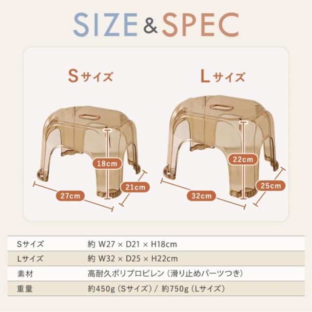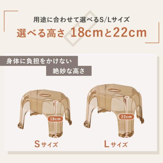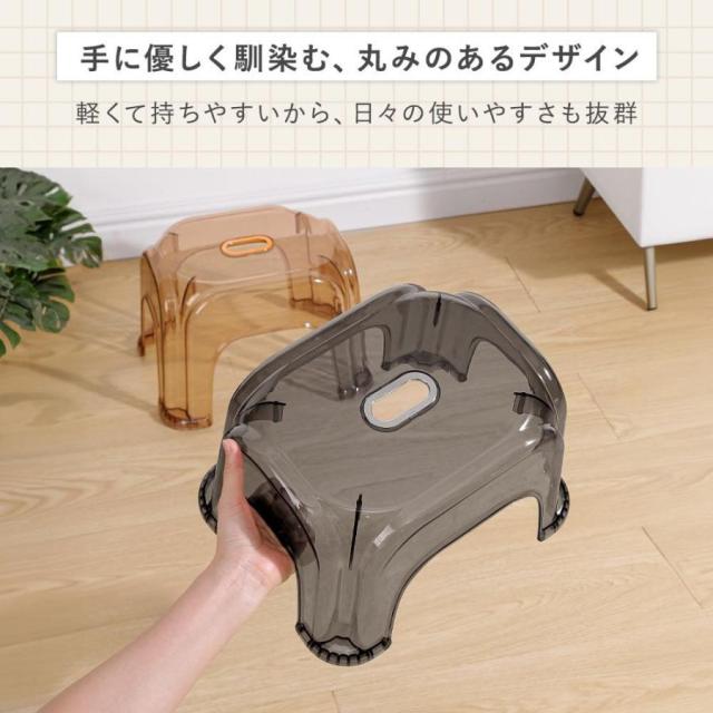 - 軽量で持ち運びが楽なのに、大人が座ってもしっかり安定。クリア素材は水垢が目立ちにくく、お手入れが簡単なのが気に入っています。