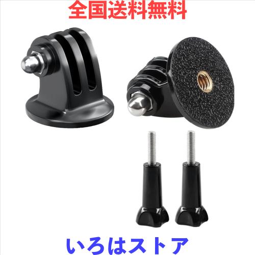 ゴープロ用 互換タイプのマウント採用 ウェアラブルカメラに から1/4”へ変換できる アダプター(1/4インチ → GoPro対応マウント)と、 固定用ネジ (各2組) の セット商品です。 上部GoPro対応のマウントでアクションカメラを固定、1/4インチのカメラネジ仕様の三脚、一脚、自撮り棒、自由雲台等に取付けて固定して使用出来るようになります。 【パッケージ内容】 ・Gopro用マウント → 1/4インチ 変換 アダプター x2 ・専用ネジx2 ・ネジ用キャップx2 ※本品は本来の目的と異なる他の用途では使用ならないでください。 ※本品および、機械本体の変形や劣化の原因となりますので、高温、直射日光を避けてご使用、保管してください。 ※本品に割れ等の破損、劣化などが見られる場合はただちに使用を中止してください。落下、破損などの故障に繋がる場合がございます。 ※使用の際はネジが締められてマウント部分がしっかりと固定されている事を確認してから撮影を開始してください。 ※本商品をご使用で生じた事故や故障・破損等の直接的損害あるいは それに伴う間接的損害について、いかなる場合も弊社では一切の責任を負いかねます。予めご了承ください。 ※アダプターはABS樹脂製で耐熱性はありません ※不使用時は幼児や子供の手の届かない場所で保管して下さい。 *ご使用端末のモニター環境や閲覧環境によっては商品紹介画像の写真と実物の色が若干異なって見える場合が御座います。予めご了承下さい。