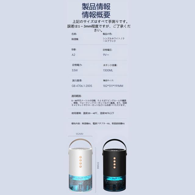 ・浴室、台所、キャンピングカー、タンス、ベッドルーム、車庫、オフィス用です。衣服、書籍のような重要な物品のカビ、湿気や臭いなどを防止でき、細菌の繁殖を抑えます。