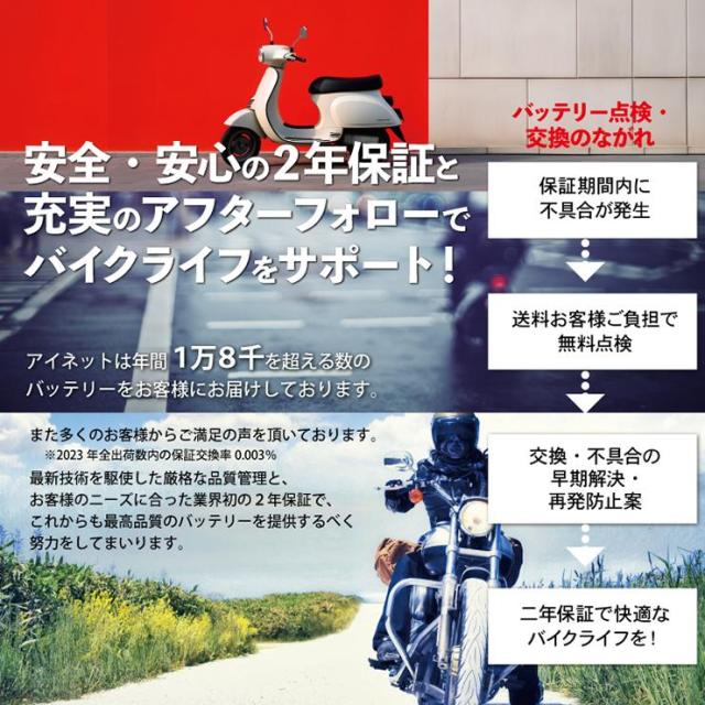 アイネットではこの高品質でコストパフォーマンスに優れたバッテリーを更に安全に安心してご使用いただけるよう以下のサービスを無料で行っています。