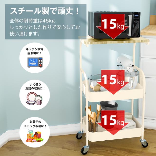 【送料無料】キッチンワゴン キャスター付き 天板付き 3段ワゴン 3段ラック ワゴン スチールワゴン ラック ストッパー付き 収納ラック マルチワゴン 北欧 キッチン収納 バスケットトローリー キッチンストッカー