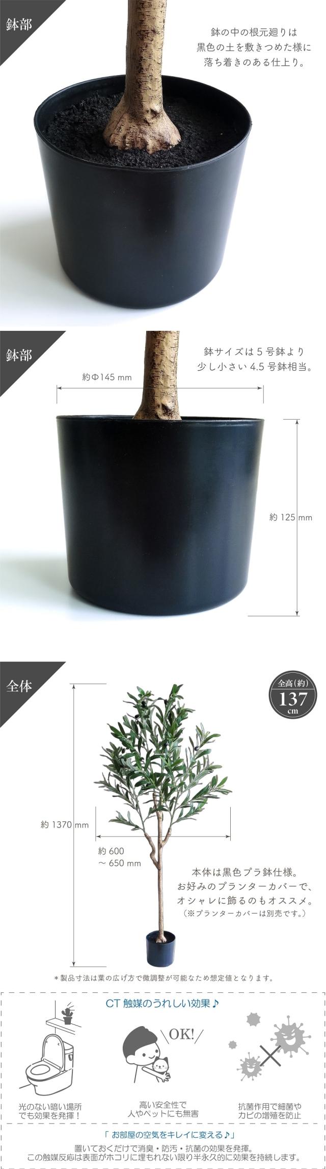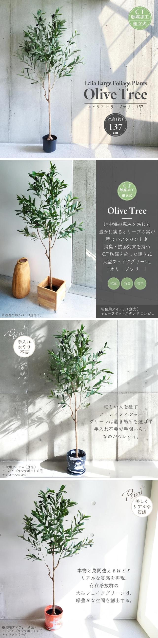 人工観葉植物 エクリア オリーブツリー 全高137cm 大型 CT触媒加工有 組立式 黒色鉢 消臭 抗菌 防汚 造花 フェイクグリーン インテリアグリーン 屋内装飾 鉢物 観葉植物 贈り物 おしゃれ インテリア
