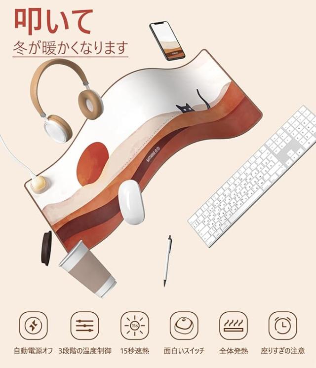 SOTHING ホットテーブルマット 防水 加熱 オフィス デスク マット 3段階 温度調整 マウスマット テーブルマット ウォームマット ペットマット 滑り止め 自動シャットダウン