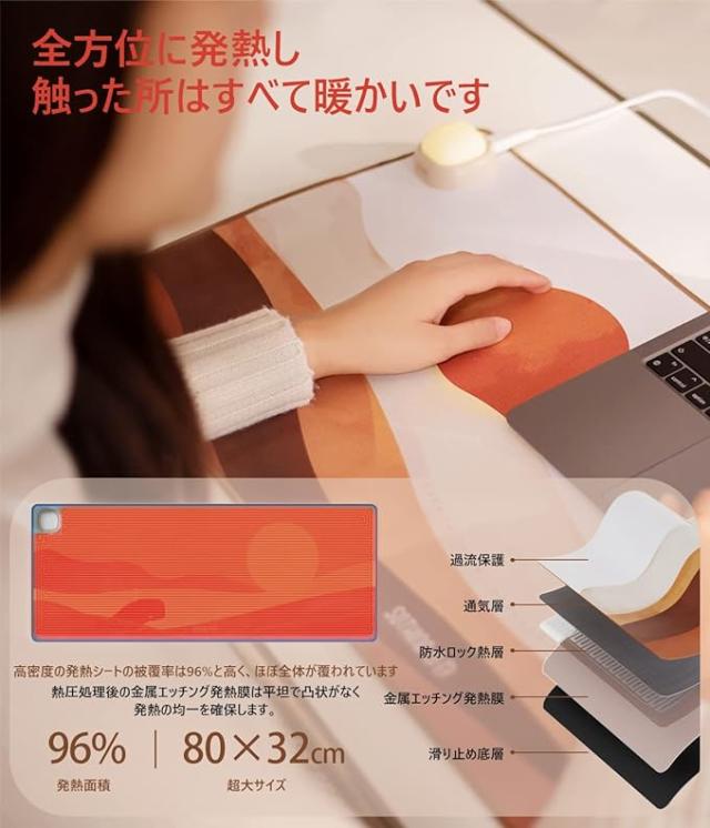 【15秒加熱】SOTHING ホットテーブルマット 80x32cm 防水 加熱 デスク マット ヒーター 3段階 温度調整 デスクヒーター 卓上 デスクマットヒーター 暖かい 手 温める グッズ マウスマット マウスパッド テーブルマット オフィス デスク 机 あったかグッズ 寒さ対策 滑り止め