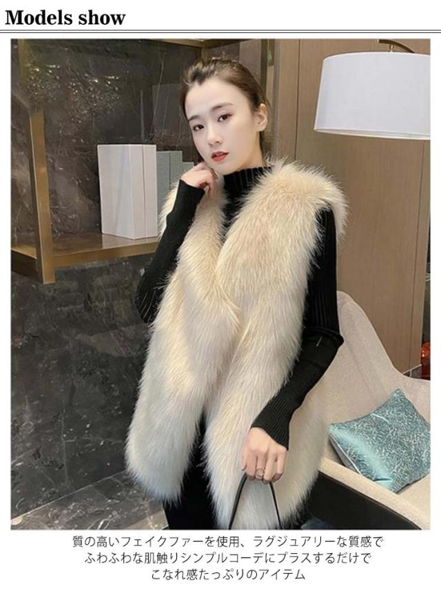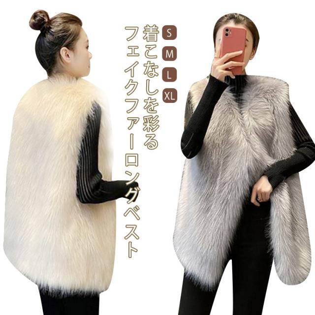 ファーベスト レディース コーデ フェイクファーロングベスト 秋 冬 ファーロングジレ ロングファーベスト 前開き カーディガン パーティー ファーベスト レイヤード カジュアル 大人コーデ 大人カジュアル 大人ファッション 送料無料