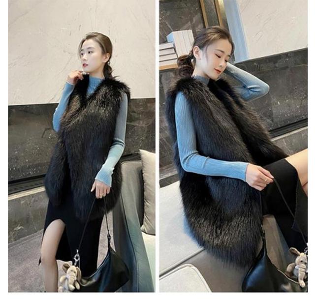 ファーベスト レディース コーデ フェイクファーロングベスト 秋 冬 ファーロングジレ ロングファーベスト 前開き カーディガン パーティー ファーベスト レイヤード カジュアル 大人コーデ 大人カジュアル 大人ファッション