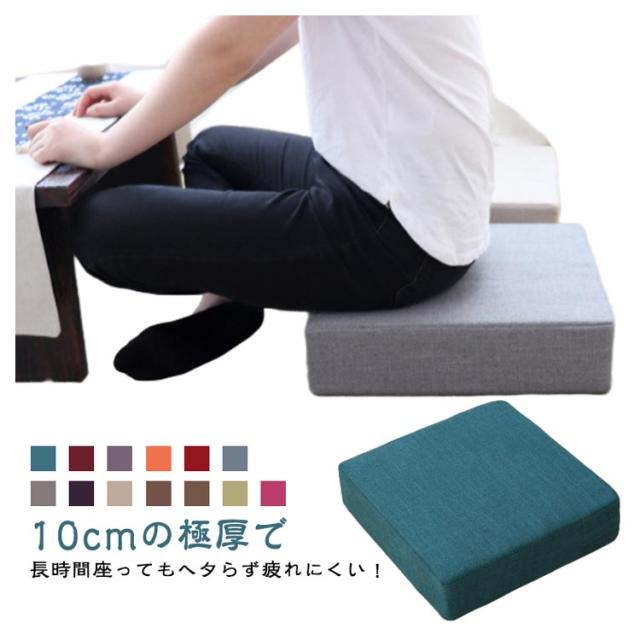 | 10cmの極厚で長時間座ってもヘタらず疲れにくい! カバーは通気性のある生地を使用しており、触り心地がいいです。ナチュラルさと上品さを演出します♪ ファスナー付きでカバーが簡単に取り外して洗濯できます。 子供用の高さ調整クッションとしても使えます! 座り心地は、ちょうどよい固さがあり沈みにくく座りやすいです。 | |
