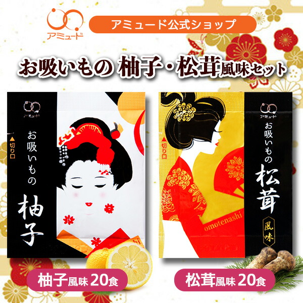 アミュード公式 [ 松茸風味・柚子お吸いものセット 各20食(計40食)] お吸いもの お吸い物 セット 柚子 松茸 ゆず まつたけ 防災 非常食 長期保存 備蓄品 うなぎ 春雨スープ 粉末スープ 乾燥スープ 即席 簡単 インスタント お弁当 スープジャー (メール便送料無料)
