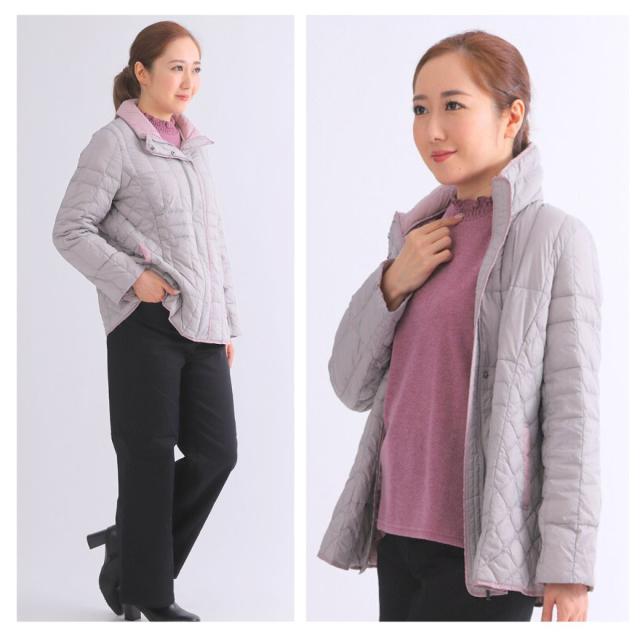 【サイズ】Mサイズ 着丈 65 袖丈 59 バスト 108 肩幅 39Lサイズ 着丈 66 袖丈 60 バスト 114 肩幅 40LLサイズ 着丈 67 袖丈 61 バスト 120 肩幅 413Lサイズ 着丈 68 袖丈 62 バスト 126 肩幅 42単位 (cm)(単位:cm)※製造工程上、各部位に±2cm程度の誤差が生じる場合があります。※上記のサイズはスタッフが平置きで実測したサイズです。※商品タグ等の表記サイズ値とは異なる場合があります。【素材】ナイロン100%(ダウン80%・フェザー20%)衿・前立て部分:ポリエステル100%【特徴】 「若い子が着るような服は気恥ずかしい…」「でも、いかにもシニア向けなデザインはつまらない…」そんな風に感じている50代、60代、70代、80代の女性は少なくありません。【シニアの服ニコニコの森】は、そんな大人の女性が"私らしく"輝ける、心ときめくお洒落をお届けしたいと考えています。この軽くて暖かいダウンジャケットは、冬の寒さも、着ぶくれのお悩みも解消し、あなたのお出かけを軽やかに、もっと楽しく彩ります。【魅力1:驚きの暖かさ!ダウン80%の秘密】\着るだけで体感温度+10℃!/このダウンジャケットは、質の高いダウンを**80%**も使用しています。羽毛が持つ優れた断熱効果で、体から発する熱をしっかり閉じ込め、外の冷気をシャットアウト。まるで魔法瓶のように、衣服内は最大35℃前後の快適な暖かさを長時間(10時間以上)維持します。「朝から晩まで、ずっと暖かい」「薄着でも安心」と、多くのお客様から喜びの声をいただいております。もう厚着で体が重くなる心配はいりません。真冬の極寒でも、まるで春のような暖かさに包まれます。【魅力2:軽くて動きやすい!日常から旅行まで】「ダウンって暖かいけど、重いと肩が凝るのよね…」そんな心配はご無用です!このダウンジャケットは、まるで羽織っていないかのような驚きの軽さ。肩や腕への負担が少ないため、長時間の着用でも疲れにくく、アクティブな一日をサポートします。お買い物、ご友人とのランチ、ご旅行、観劇、ウォーキング…どんなシーンでも快適に、軽快に動けます。小さく畳めるので、旅先での持ち運びにも便利。荷物が多くなりがちな旅行でも、かさばらずスマートに持ち運べます。【魅力3:マフラーいらず!首元まで暖かいデザイン】寒い季節のお悩みの一つが、首元の防寒対策。このダウンジャケットは、首元までしっかりカバーするスタンドカラーデザインを採用しています。ふんわりと立ち上がる襟が、冷たい風の侵入を防ぎ、マフラーを巻かなくても首元を暖かく保ちます。「大きな襟でマフラーいらず!」と、特に冬場に嬉しい機能性です。【魅力4:体型カバーも叶える洗練デザイン】女性の体を美しく見せることにこだわったAラインシルエットは、気になるお腹周りやヒップをふんわりと優しくカバーし、着痩せ効果も期待できます。カジュアルすぎず、上品できれいめな印象なので、幅広い年代の女性にお似合いになります。【こんな方におすすめです】50代、60代、70代、80代で、軽くて暖かいアウターをお探しの方真冬の防寒対策をしっかりしたいけど、着ぶくれはしたくない方旅行や普段のお出かけに、軽快に羽織れるアウターが欲しい方上質な品質にこだわりたい方母の日、敬老の日、誕生日、クリスマスなど、大切な方へのプレゼントやギフトをお探しの方実用的で、長く使えるアウターを探している方注意事項 ■商品の撮影には最大限注意を払っておりますが、閲覧時のモニター環境によりましては実際の商品と若干違うお色味に映ることもございます。