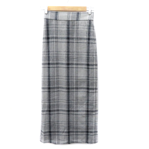 【中古】アントマリーズ タイトスカート ロング丈 マキシ丈 スリット チェック柄 F グレー 紺 ネイビー レディース