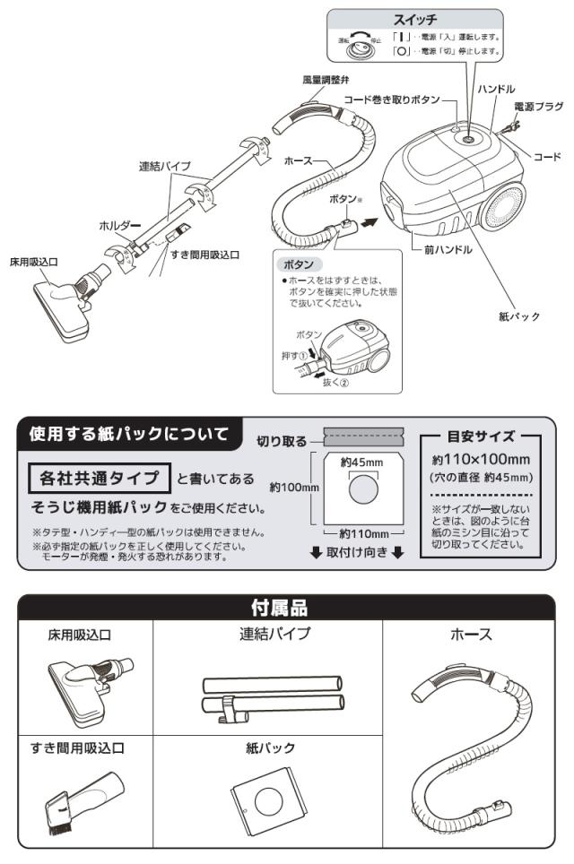 - 使いやすいシンプル設計の紙パック式クリーナー。