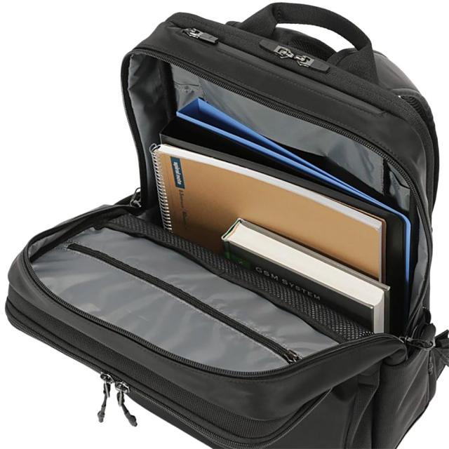 2層式の前面側メインルームは、小物の収納に便利なマルチポケットレイアウトでビジネス書類など効率のよい収納が実現します。