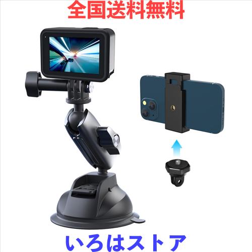 TELESIN Gopro用 吸盤マウント 車載マウント アクションカメラ用 スマホホルダー付き 360度回転 アルミ合金製 ゴープロ DJI OSMO 360 Gop