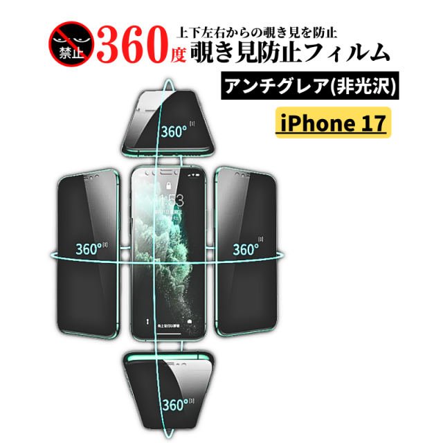 iPhone 17 360度 覗き見防止 アンチグレア ガラスフィルム 保護フィルム 強化ガラス 反射防止 非光沢 指紋防止 全面保護 硬度9H iPhone17