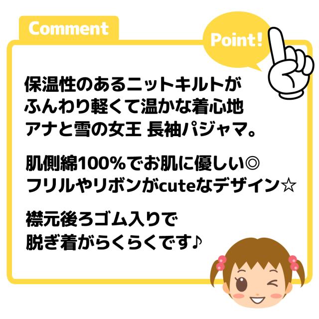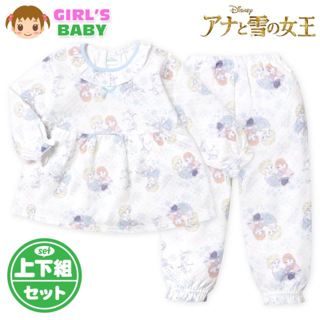 【送料無料】女児 ベビー ニットキルト 長袖 パジャマ Disney ディズニー アナと雪の女王 上下組 あったか素材 保温 フェミニン 女の子 80cm 90cm 95cm iw-1400【メール便対応】
