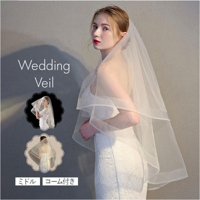 ウェディング ベール ミドル 通販 ウエディングベール ウェディングベール ミドルベール ウエディング ヴェール 結婚式 花嫁 veil 2層 ベールアップ ベールダウン 金属コーム付き シンプル チュール ブライダル ウェディング小物