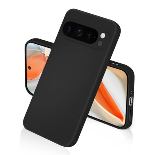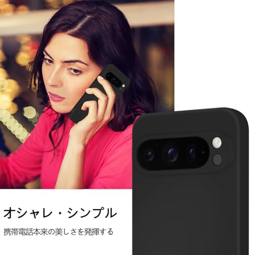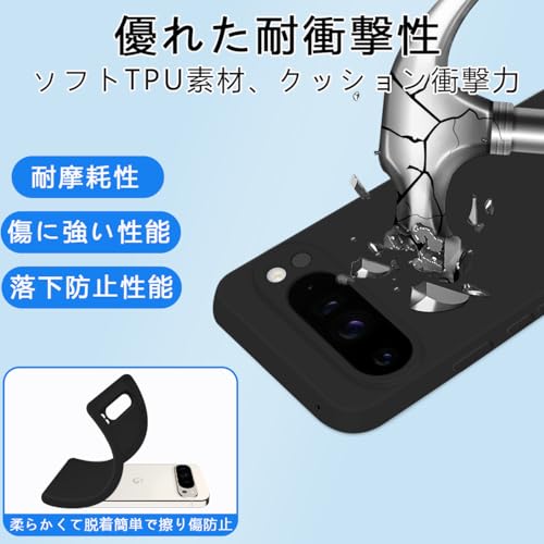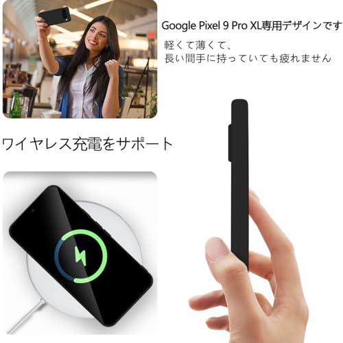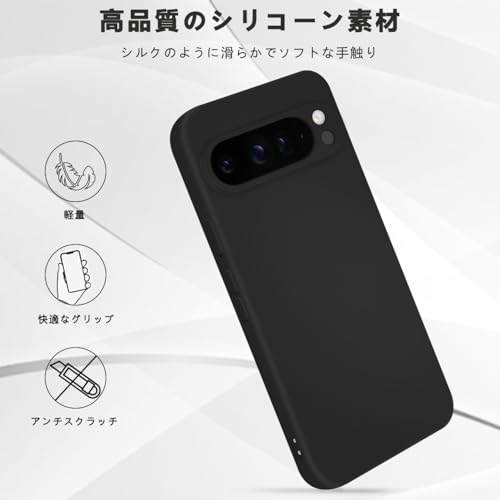 Google pixel 9PROXL ケース シリコン 滑り止め 耐衝撃 スマホケース 指紋防止 カバー グーグル ピクセル 9プロXL ケース 衝撃吸収 カメラ保護 携帯ケース ソフト 薄型 ワイヤレス充電対応 (ブラック)