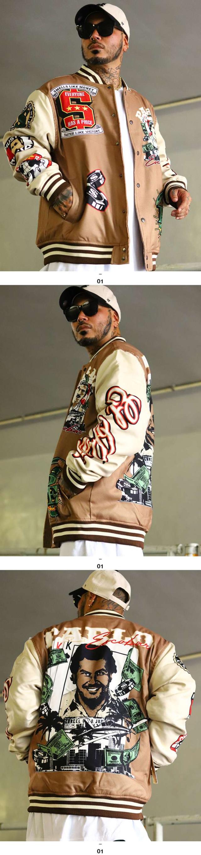 送料込 L-XL かっこいい おしゃれ 総柄 オーバーサイズ マフィア カルテル スタジアムジャンパーメンズファッション メンズアウター ハイ Kingpin キングピン 犯罪王 コロンビア 春秋冬用