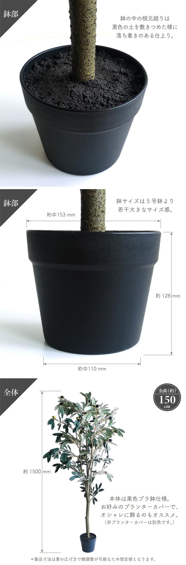 人工観葉植物 アーティフィシャルグリーン オリーブツリー 全高150cm 大型 黒色鉢 造花 フェイクグリーン インテリアグリーン 屋内装飾 鉢物 観葉植物 贈り物 おしゃれ インテリア