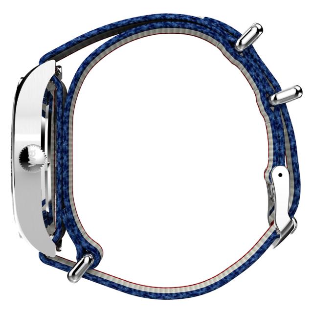 ケースはステンレススチールで丁寧に仕上げられ、ホワイトダイヤルには視認性の高いアラビア数字をフルでレイアウト。蓄光針とともに、昼夜を問わず時間をしっかりと伝えます。余計な装飾をそぎ落としたからこそ、タイムレスでクリーンなデザインに仕上がっています。