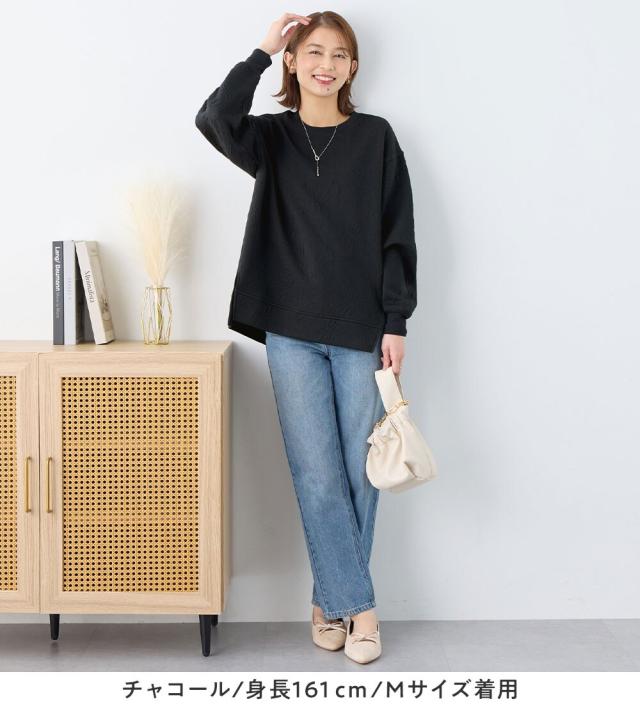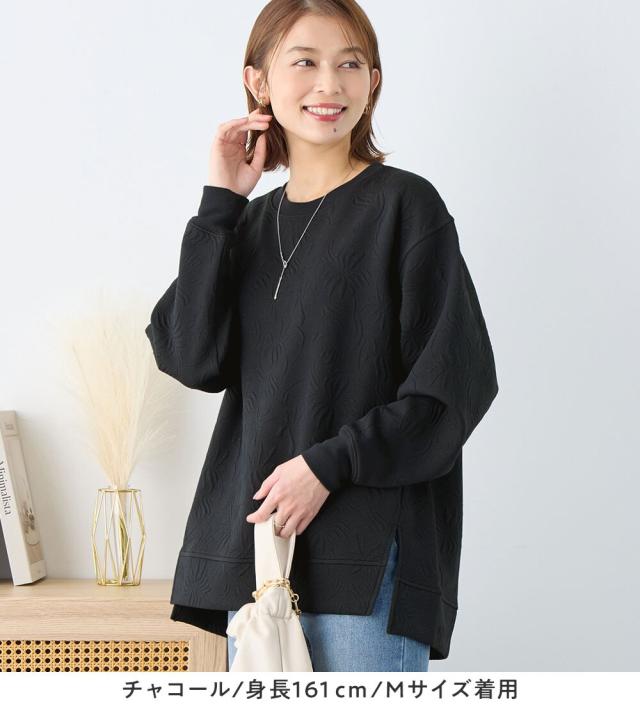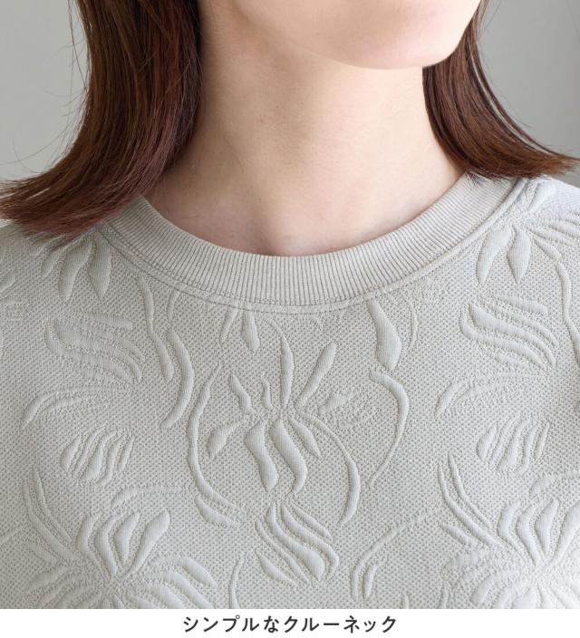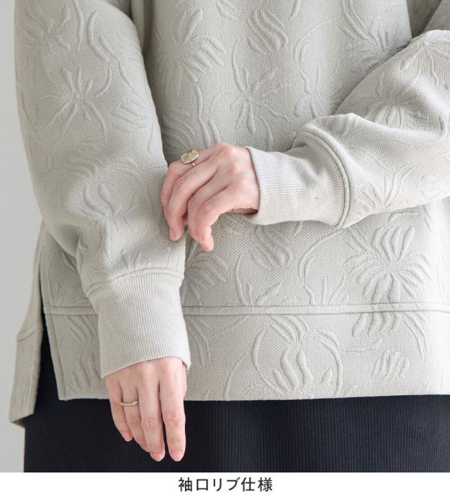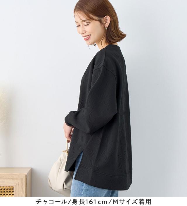 ・着映えを叶える立体的なふくれジャカード:ふっくらと厚みのあるジャカード編で抽象的な花柄を表現、シンプルな着こなしでも存在感を放ちます。