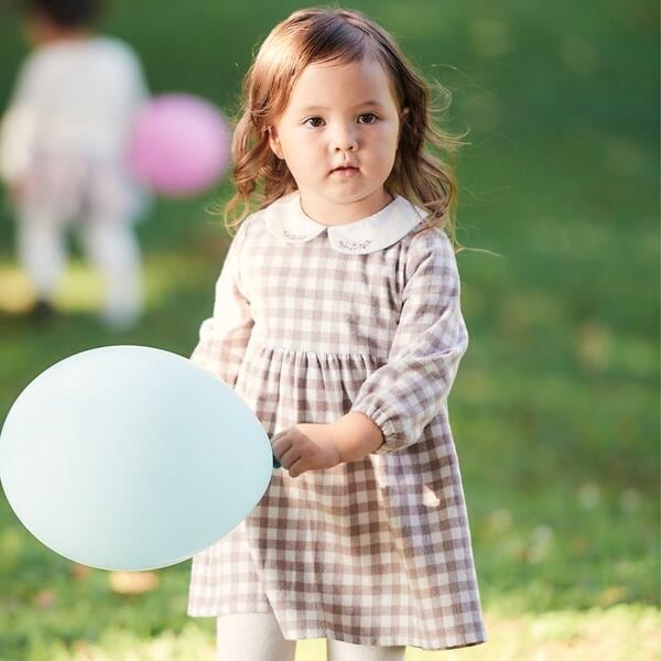 【お揃い】ネルギンガムチェック丸襟長袖ワンピース(80~100cm)