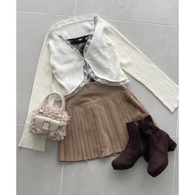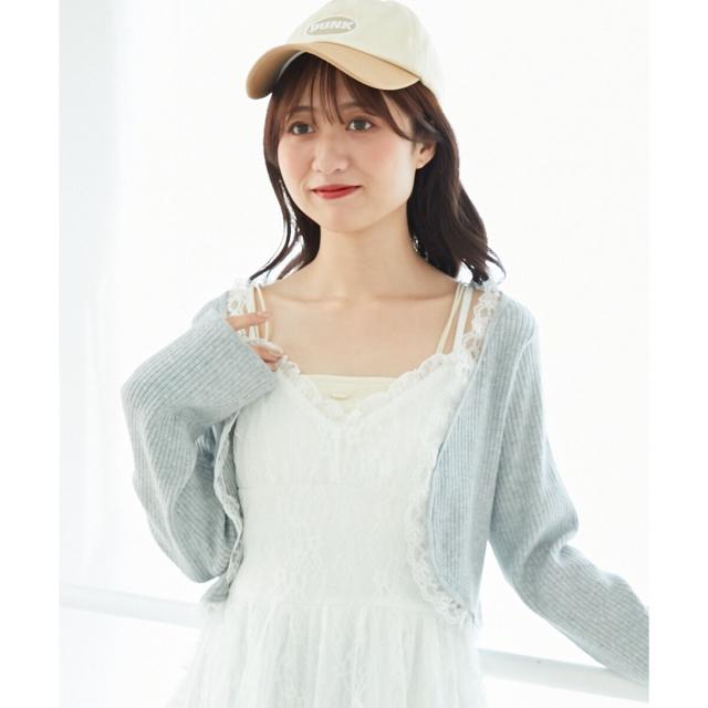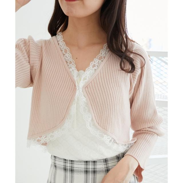 繊細なレースをあしらった、フェミニン度高めのフリルカーディガン。