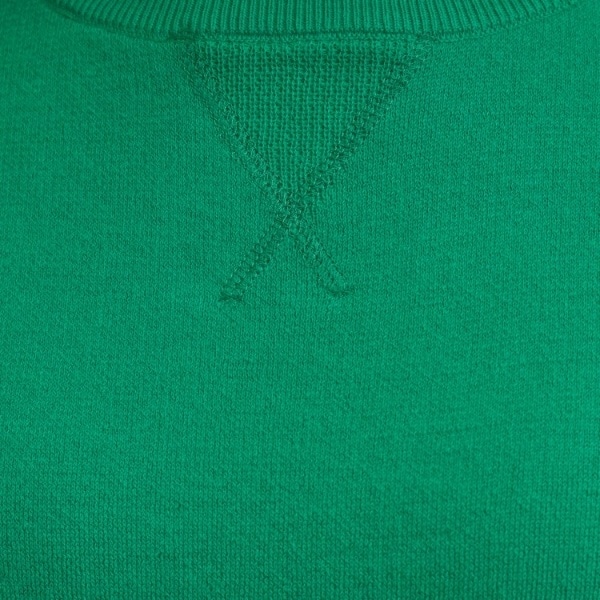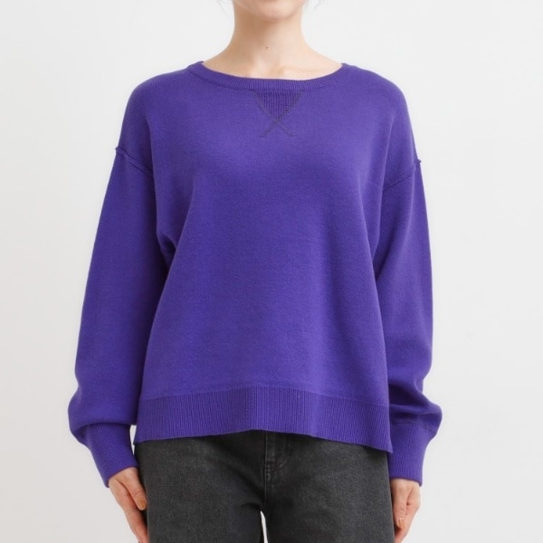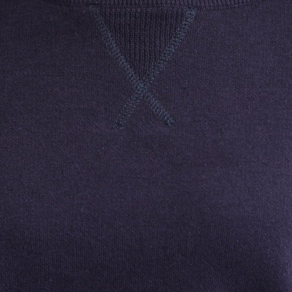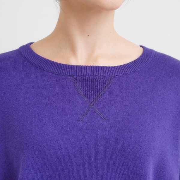 シンプルなデザインにヴィンテージスウェットにあるような「Vガゼット」というディテールを取り入れた、スウェット風ニットです。