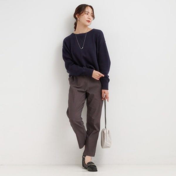 テーパードパンツや落ち感あるワイドパンツ合わせにすると、上品なきれいめカジュアルコーデにも。