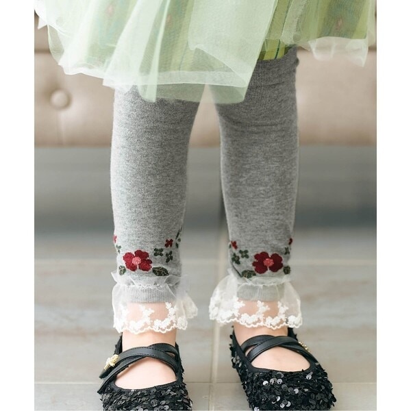 アプレ レ クール(apres les cours)/お花・雪柄裾レースレギンス