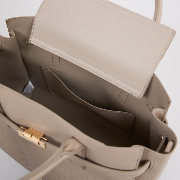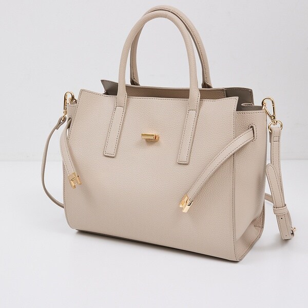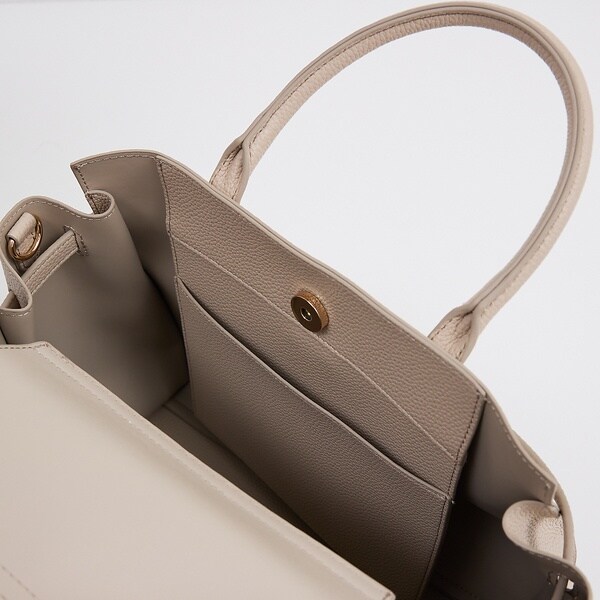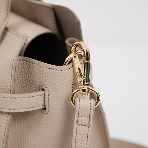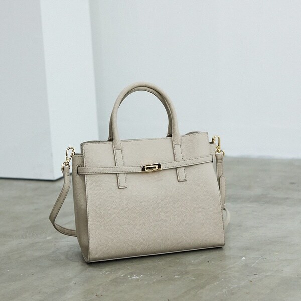 上品な質感のフェイクレザーを使用したベルテッドトートバッグ。