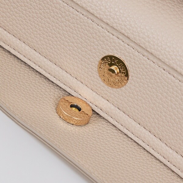 フロントの金具パーツがほどよいアクセントになり、シンプルなデザインでコーディネートに取り入れやすいアイテムです。